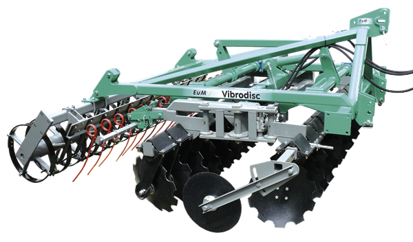 Diese Kurzscheibenegge wurde für den Vibrocat-Rahmen konstruiert und kann durch Tausch des Werkzeugfeldes mit wenigen Handgriffen in einen Vibrocat-Grubber umgebaut werden. So ergänzen sich Vibrodisc und Vibrocat optimal bei der Stoppel- und Bodenbearbeitung und sorgen für zeitgemäße mechanische Beikrautregulierung.